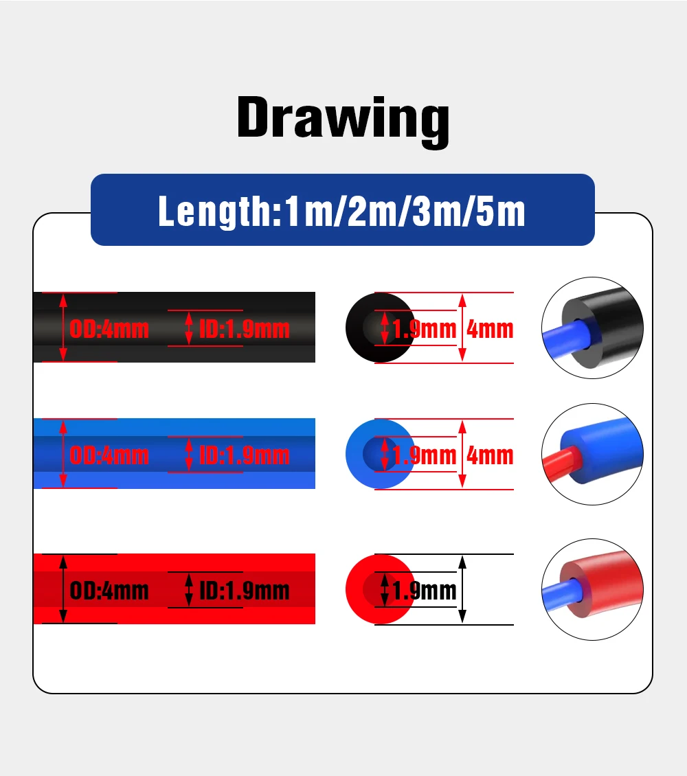 1.9x4mm ID1.9mm OD4mm PTFE Tube Teflonto For 1.75mm filament