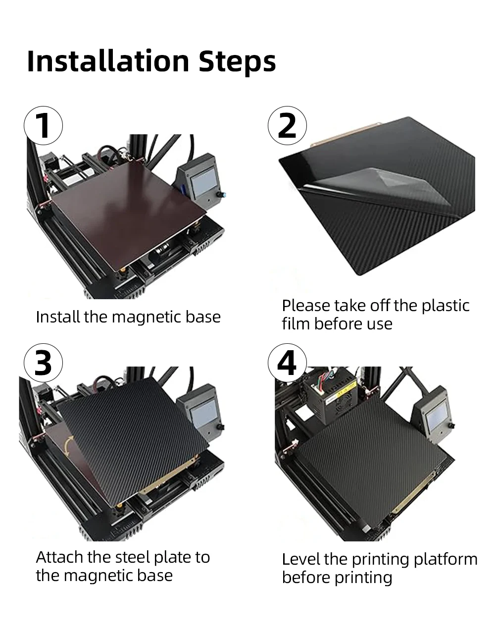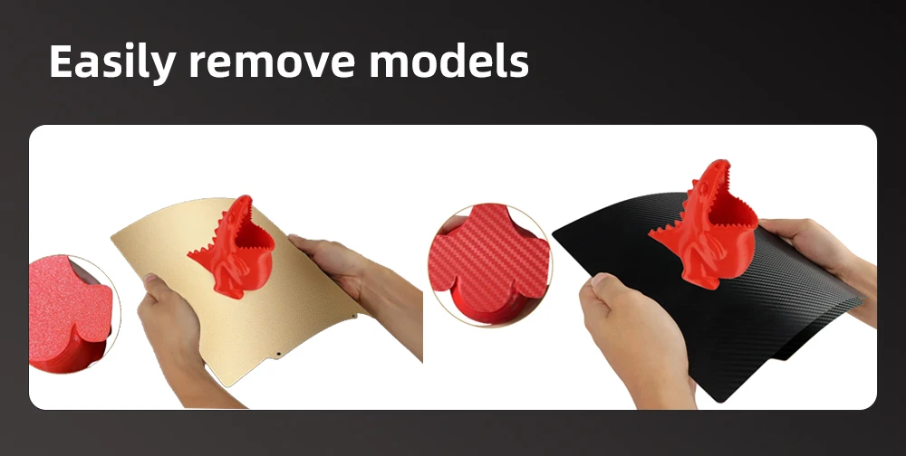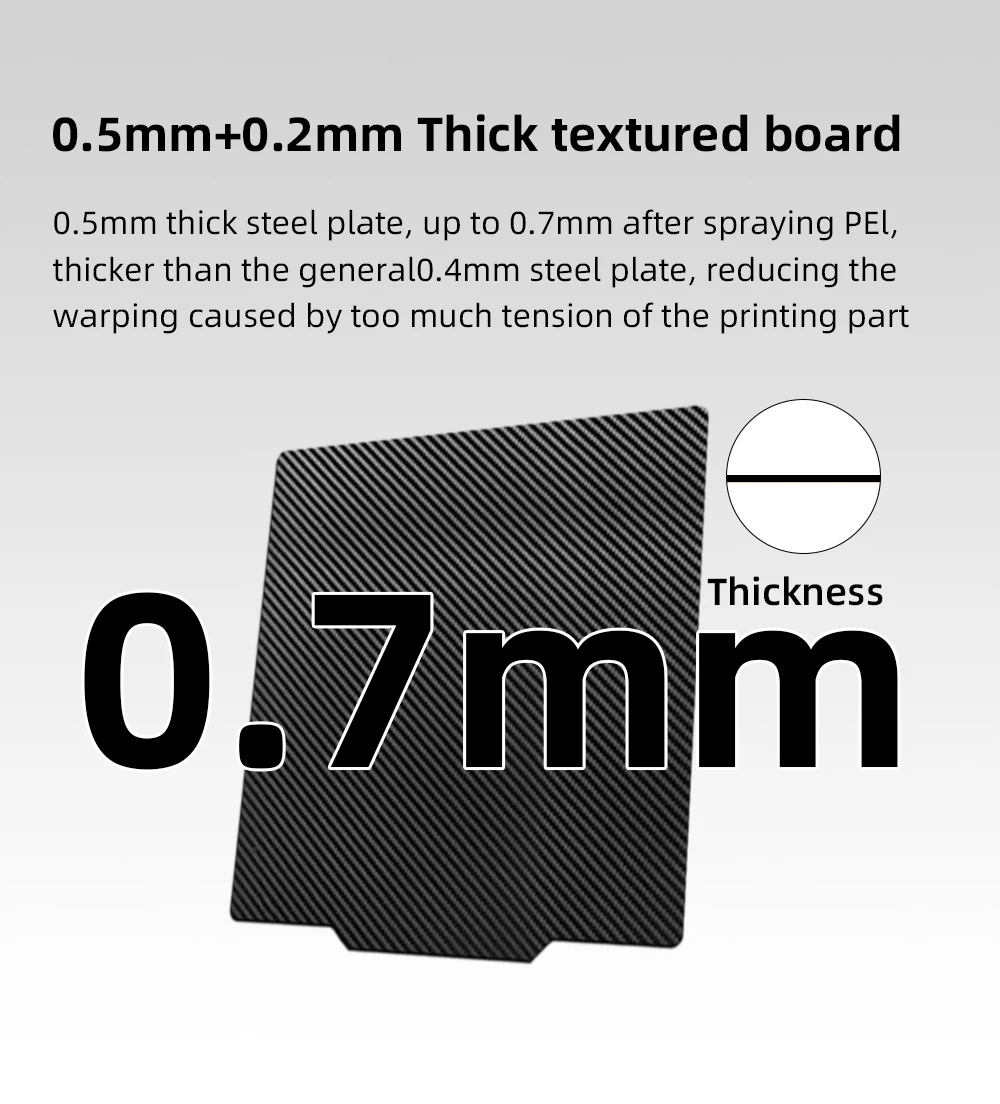 0.5mm thick steel plate, up to 0.7mm after spraying PElthicker than the general0.4mm steel plate, reducing thewarping caused by too much tension of the printing part