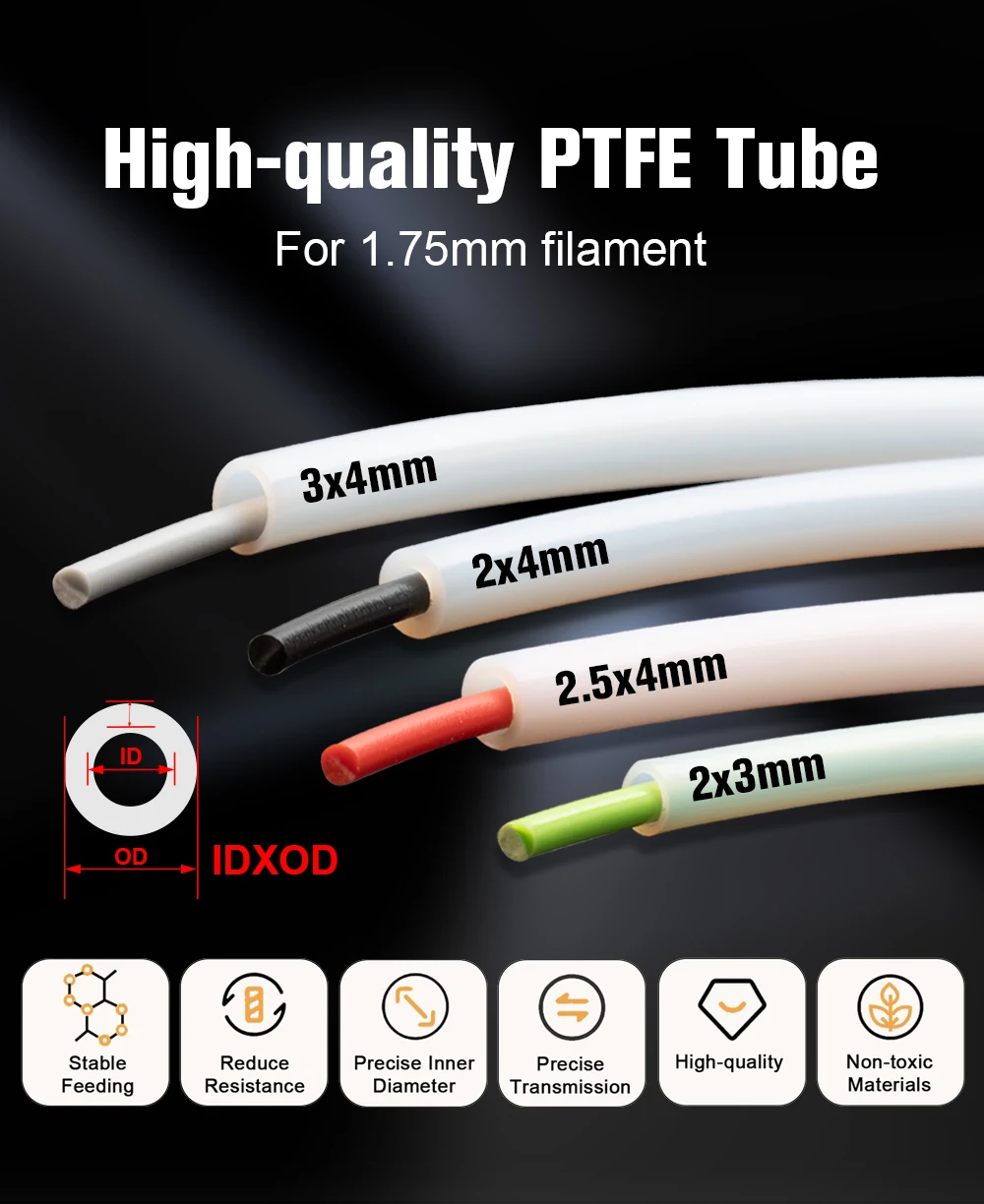 3x4mm 2x3mm 2.5x4mm 2x4mm White PTFE TUBE Teflonto For Bambu Lab BMUC
