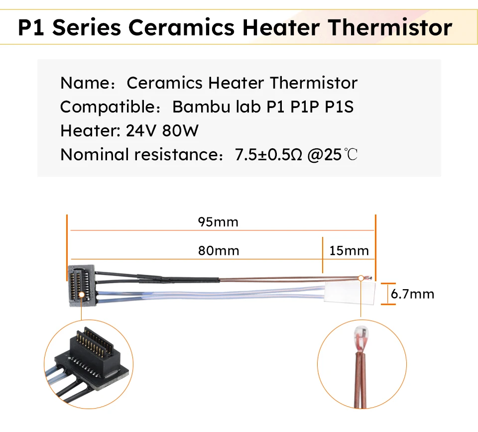 Ceramic Heater / Thermistor for TZ Hotend / X1 Hotend/P1 P Hotend/CHCB-OT Hotend