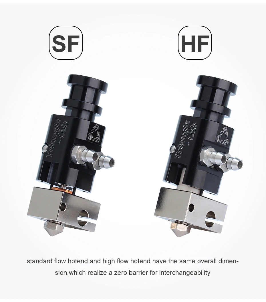 standard flow hotend and high flow hotend have the same overall dimension,which realize a zero barrier for interchangeability.