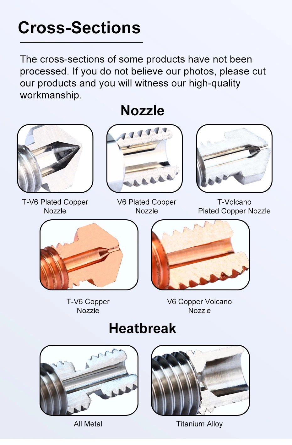 [A2 Hardened Steel V6 Nozzles] is only sold in two stores, Dforce OR trianglelab. Everything else is imitation of our appearance. Customers who don't understand can carefully compare photos. The true high quality NOZZLE is formed by the German five-axis CNC. The interior is strictly drilled. The error is less than 0.001MM. Filaments such as carbon fiber, PEEK, PEI, nylon, etc. can be smoothly passed through in a more precise manner.