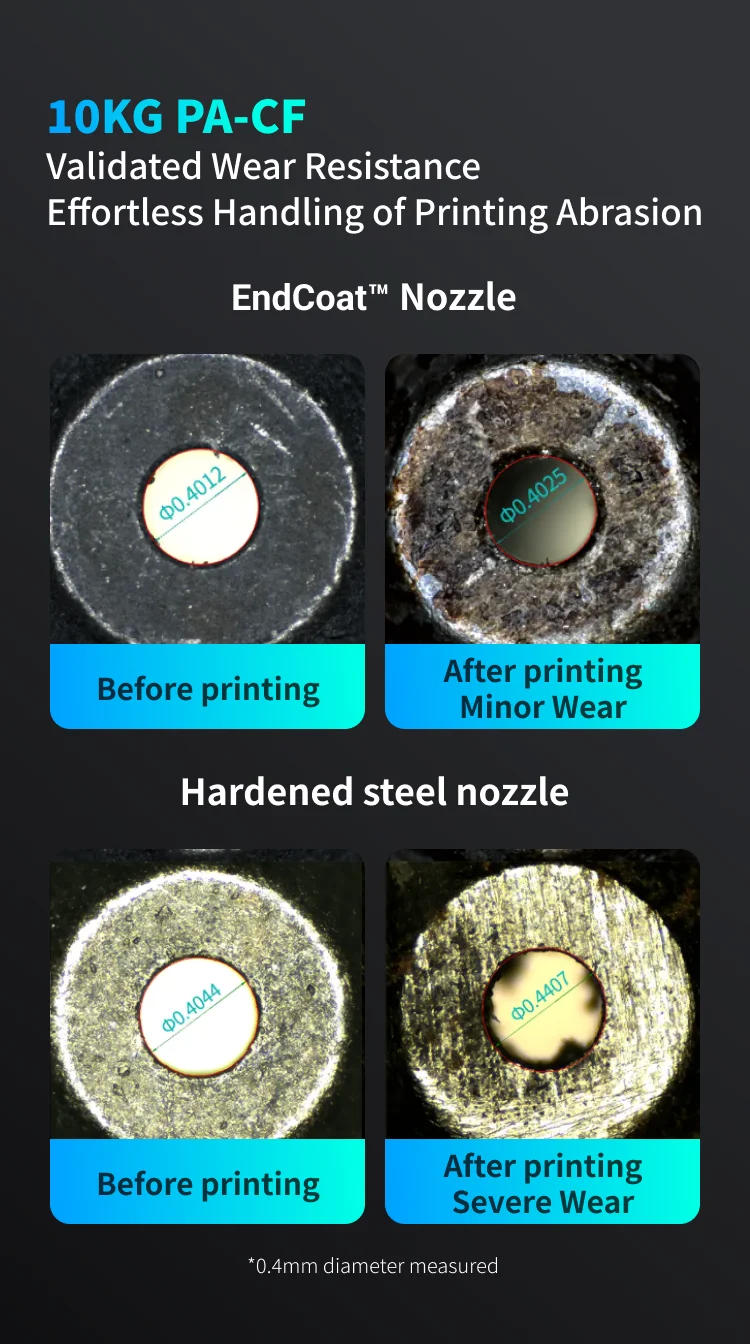 The nozzle delivers 7x the servicelife of standard hardened steel nozzles