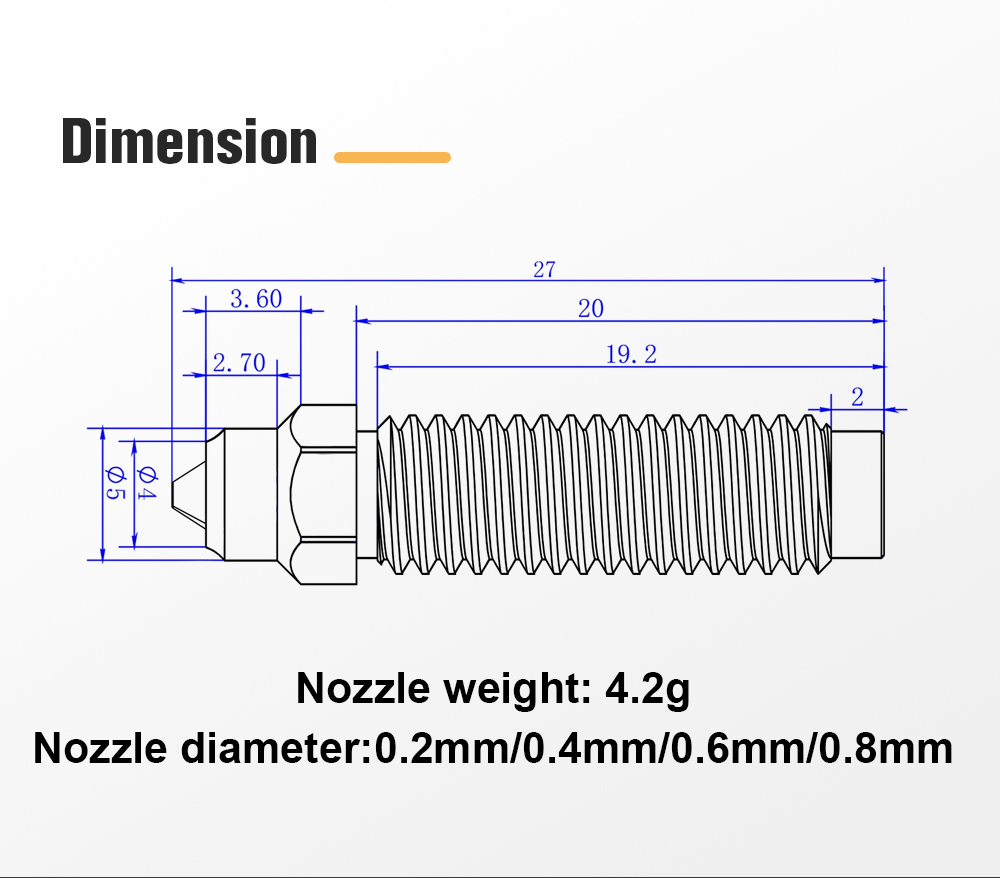 trianglelab For Elegoo Centauri Brass Bimetallic Nozzle 0.2/0.4/0.6/0.8mm Hotend Nozzles For Centauri Carbon 3D Printer Replacem