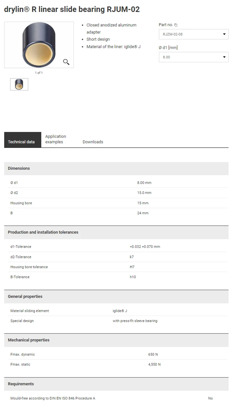 Igus Drylin Linear Bearing RJZM-02-08 LM8UU Alternative