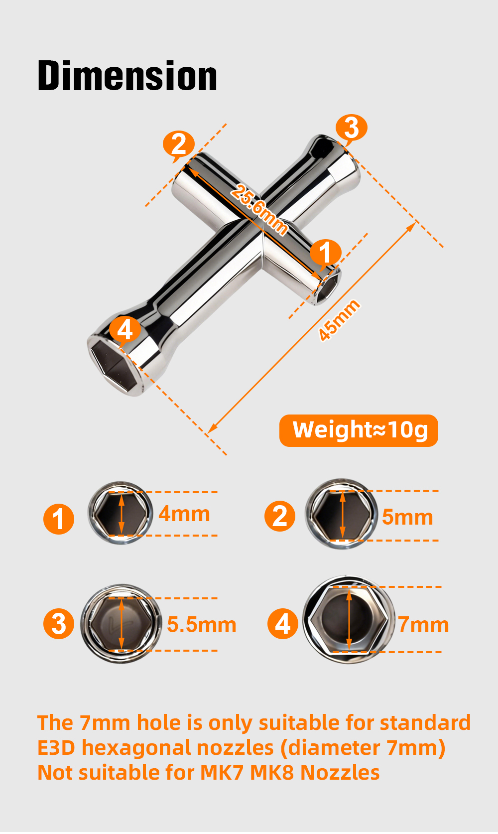 Trianglelab® Mini Cross-Head Socket Wrench four size 4mm 5mm 5.5mm 7mm lightweight Titanium steel for M4 M5 M6 M7 V5 V6 nozzle