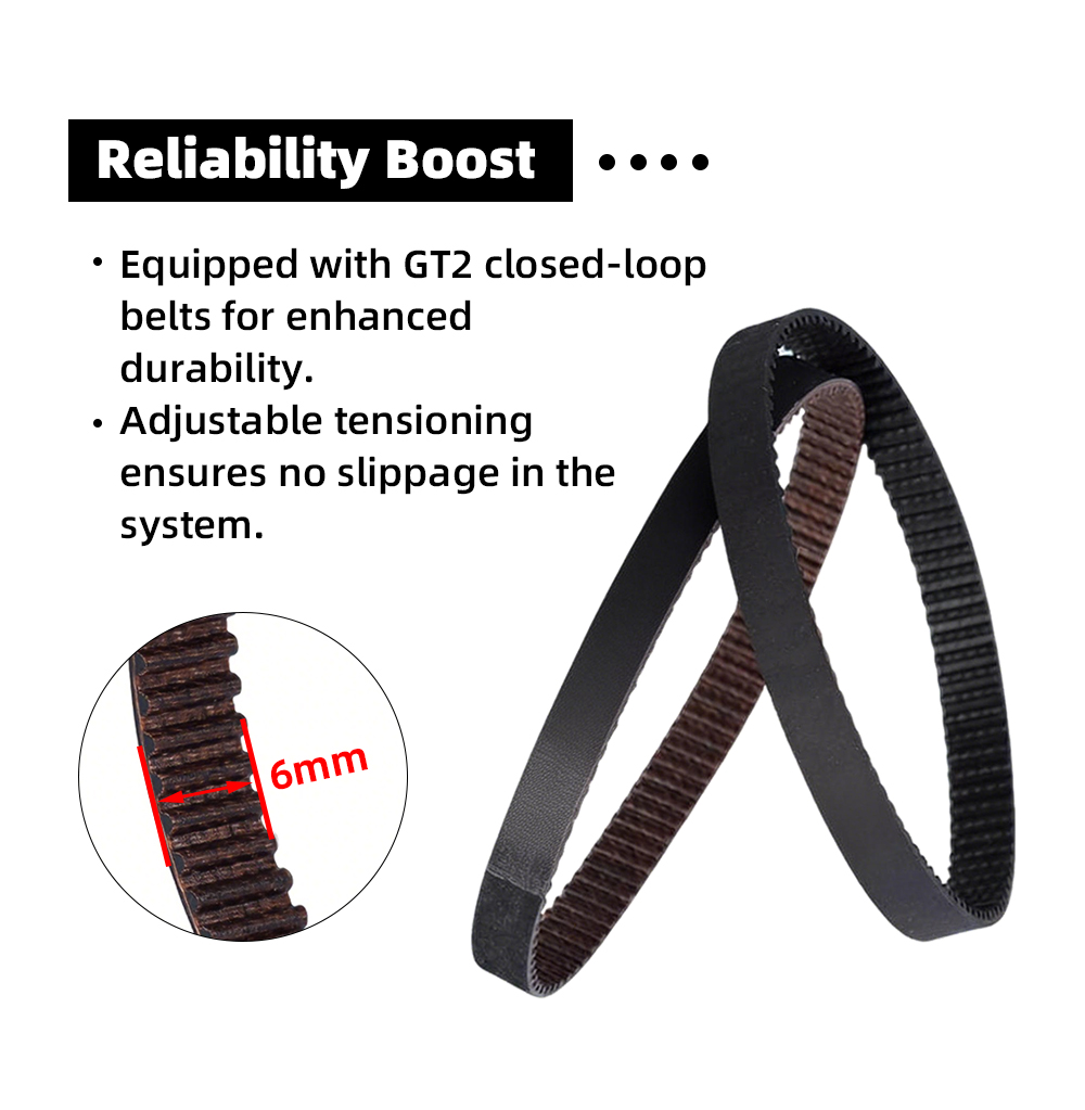 Equipped with GT2 closed-loop belts for enhanced durability.