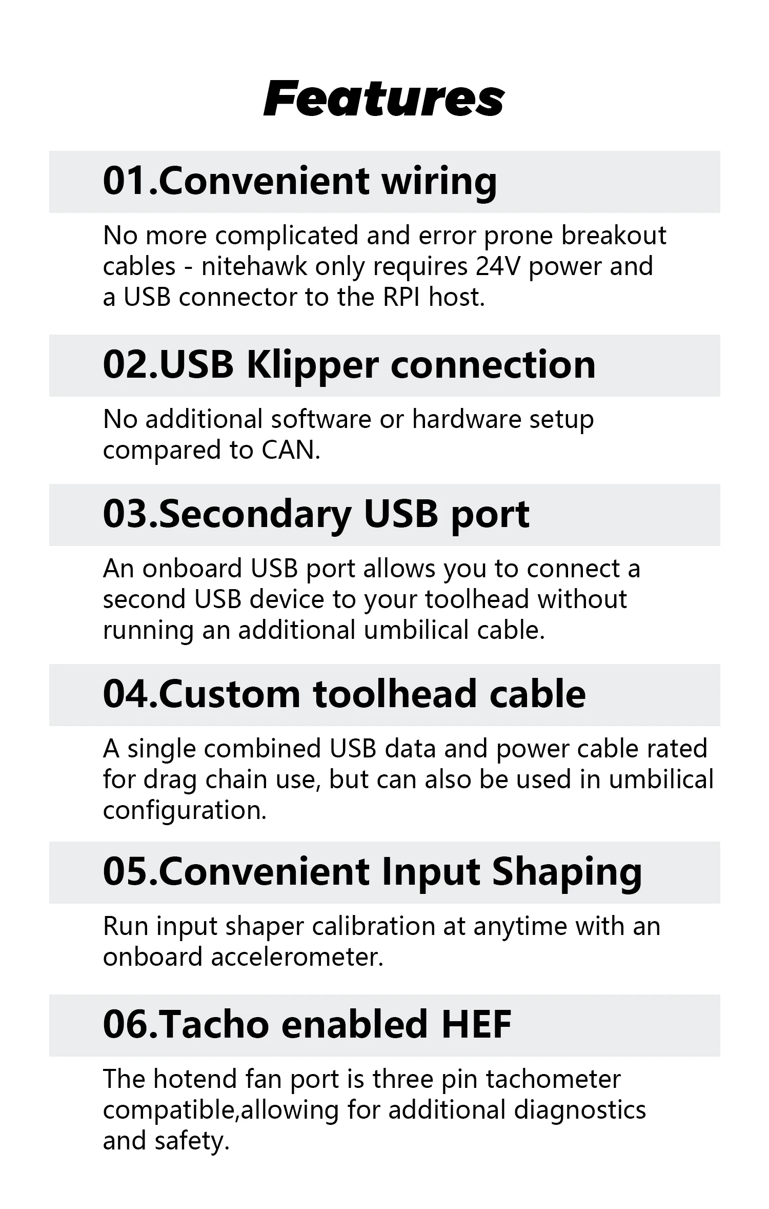 No more complicated and error prone breakout cables - nitehawk only requires 24V power and a USB connector to the RPI host.