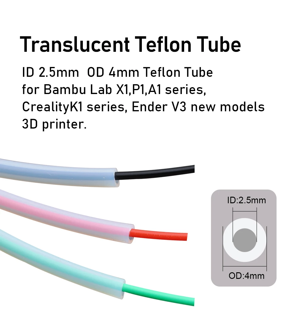 ID 2.5mm OD 4mm Teflon Tube for Bambu Lab X1,P1,A1 series, CrealityK1 series, Ender V3 new models 3D printer.