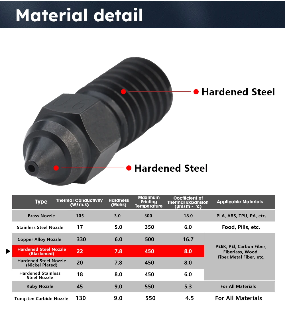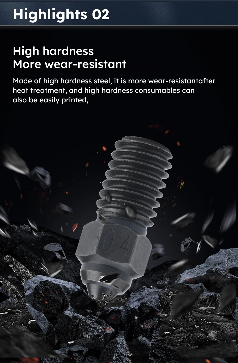 Made of high hardness steel, it is more wear-resistantafter heat treatment, and high hardness consumables can also be easily printed