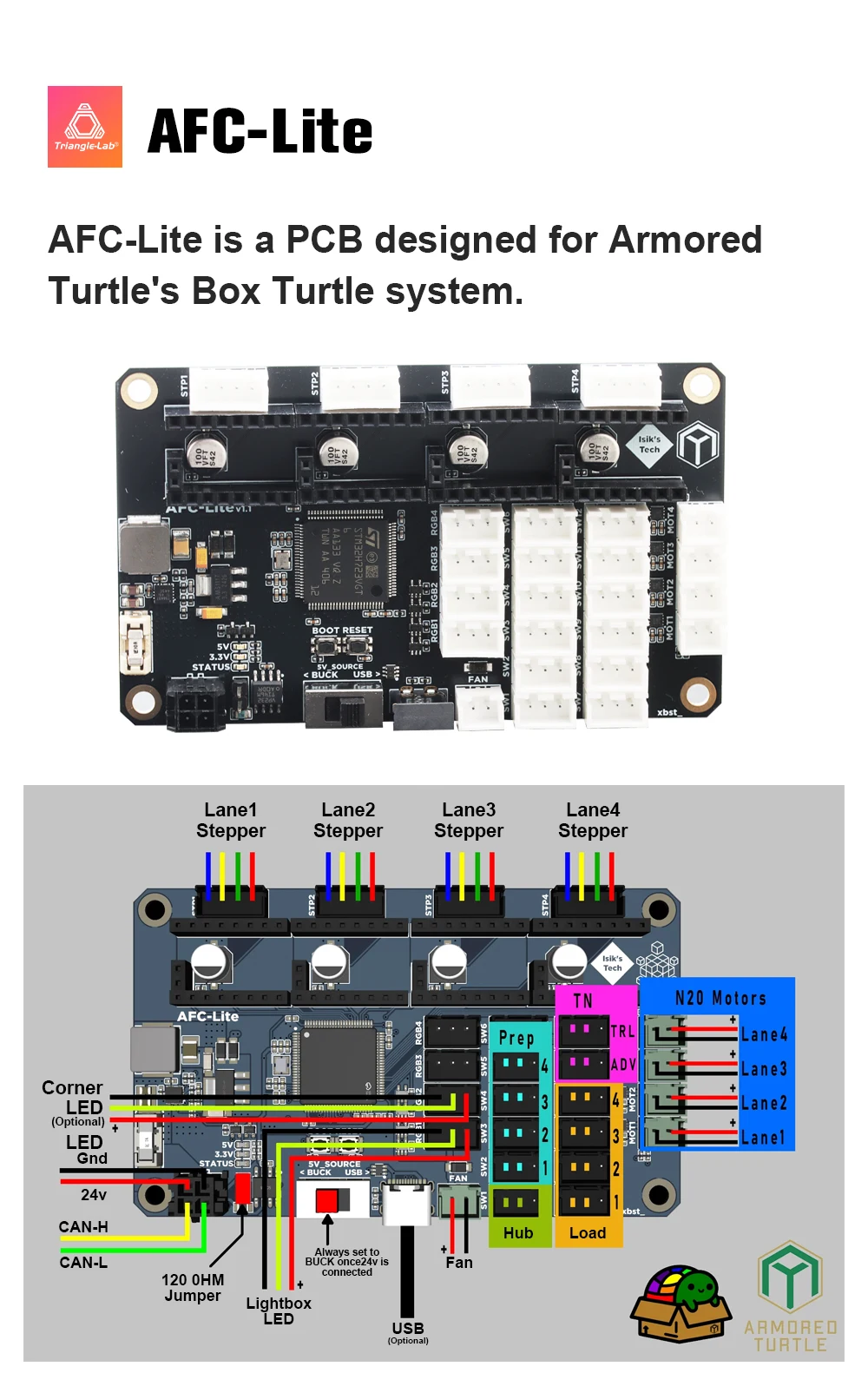 AFC-Lite is a PCB designed for ArmoredTurtle's Box Turtle system.
